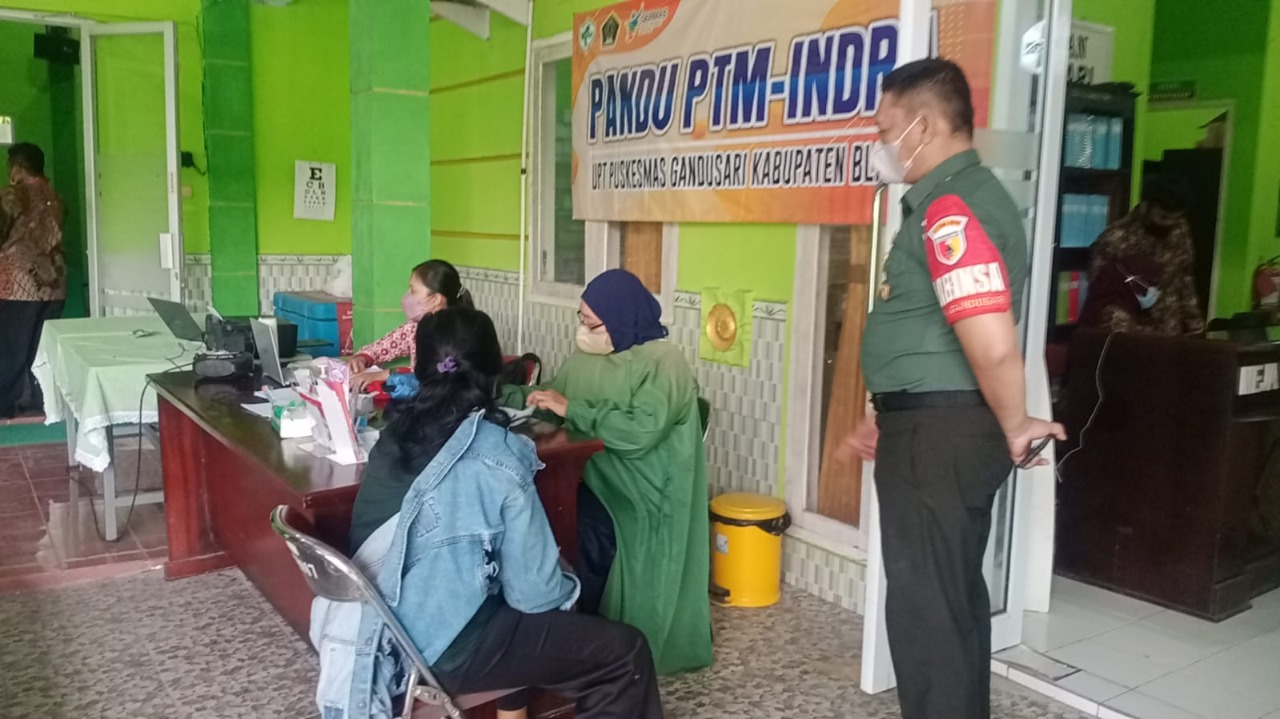 Blitar (HSB) – Untuk memberikan rasa nyaman dan aman, serta untuk memastikan kegiatan berjalan lancar, Babinsa Koramil Tipe B 0808/15 Gandusari Kodim 0808/Blitar, Serma Slamet Puji Laksono dan Serda Nur Hatib melaksanakan kegiatan pendampingan vaksinasi Covid-19 dosis ke 1, 2 dan vaksinasi booster, terhadap warga binaannya yang belum vaksin, bertempat di Puskesmas Desa Gandusari Kec. Gandusari Kab. Blitar, Kamis (1/12/2022).