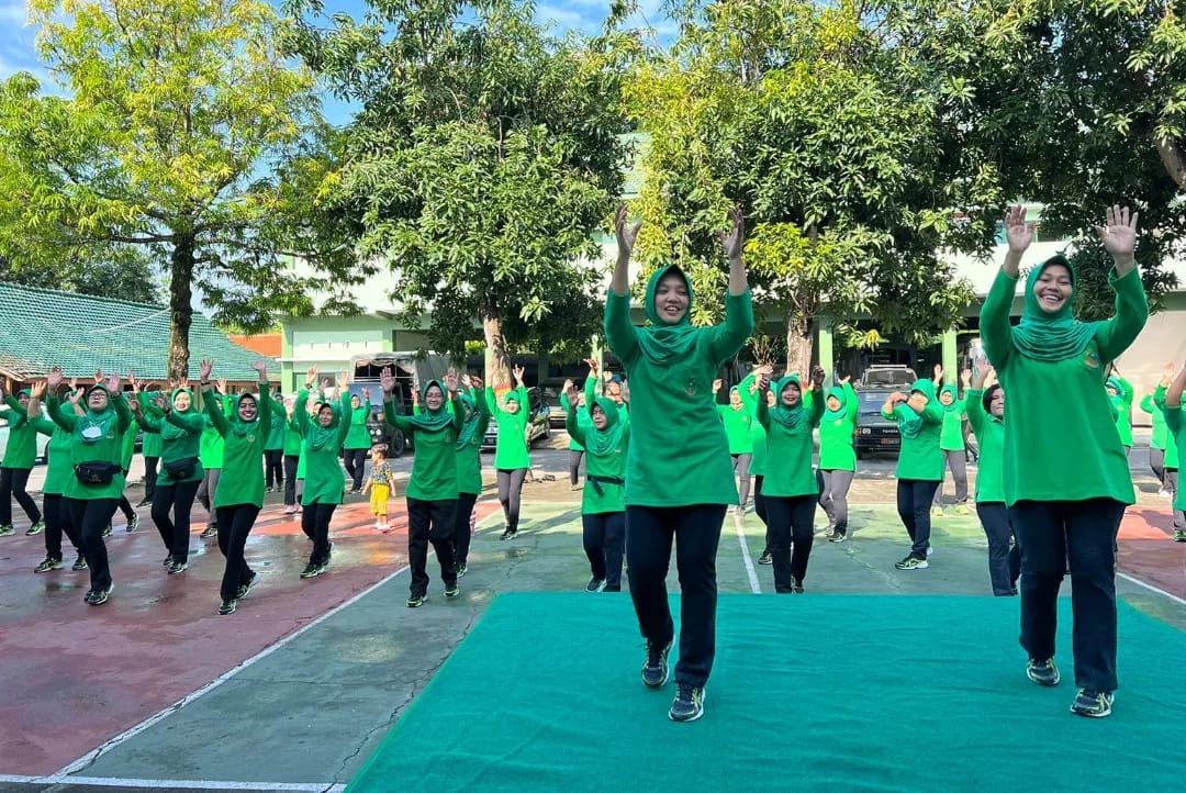 Dengan dipandu instruktur senam dari anggota mereka sendiri, para anggota Persit KCK Koorcab Rem 081 tampak bersemangat dan energik dalam mengikuti setiap gerakan yang dilakukan.