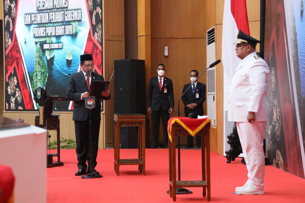 “Dengan Rahmat Tuhan Yang Maha Kuasa, pada hari ini, Jumat, tanggal 9 Desember 2022 bertempat di Jakarta, saya Menteri Dalam Negeri atas nama Presiden Republik Indonesia, dengan ini meresmikan Provinsi Papua Barat Daya berdasarkan Undang-Undang Nomor 29 Tahun 2022 tentang Pembentukan Provinsi Papua Barat Daya. Semoga Tuhan Yang Maha Kuasa meridai kita semua,” kata Mendagri Muhammad Tito Karnavian saat membacakan pernyataan peresmian.