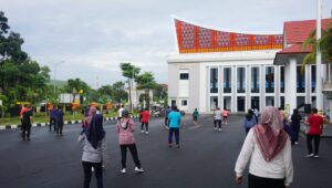 Salam kegiatan senam bersama dikomandoi langsung oleh Plt. Kepala Kejati Babel, Dr Harli Siregar SH,MHum beserta para Asisten dan para Koordinator di lingkungan Kejati Babel. Selain itu kegiatan senam bersama ini pun diikuti seluruh pegawai, tenaga kebersihan, Security dan PPNPM Kejati Babel.