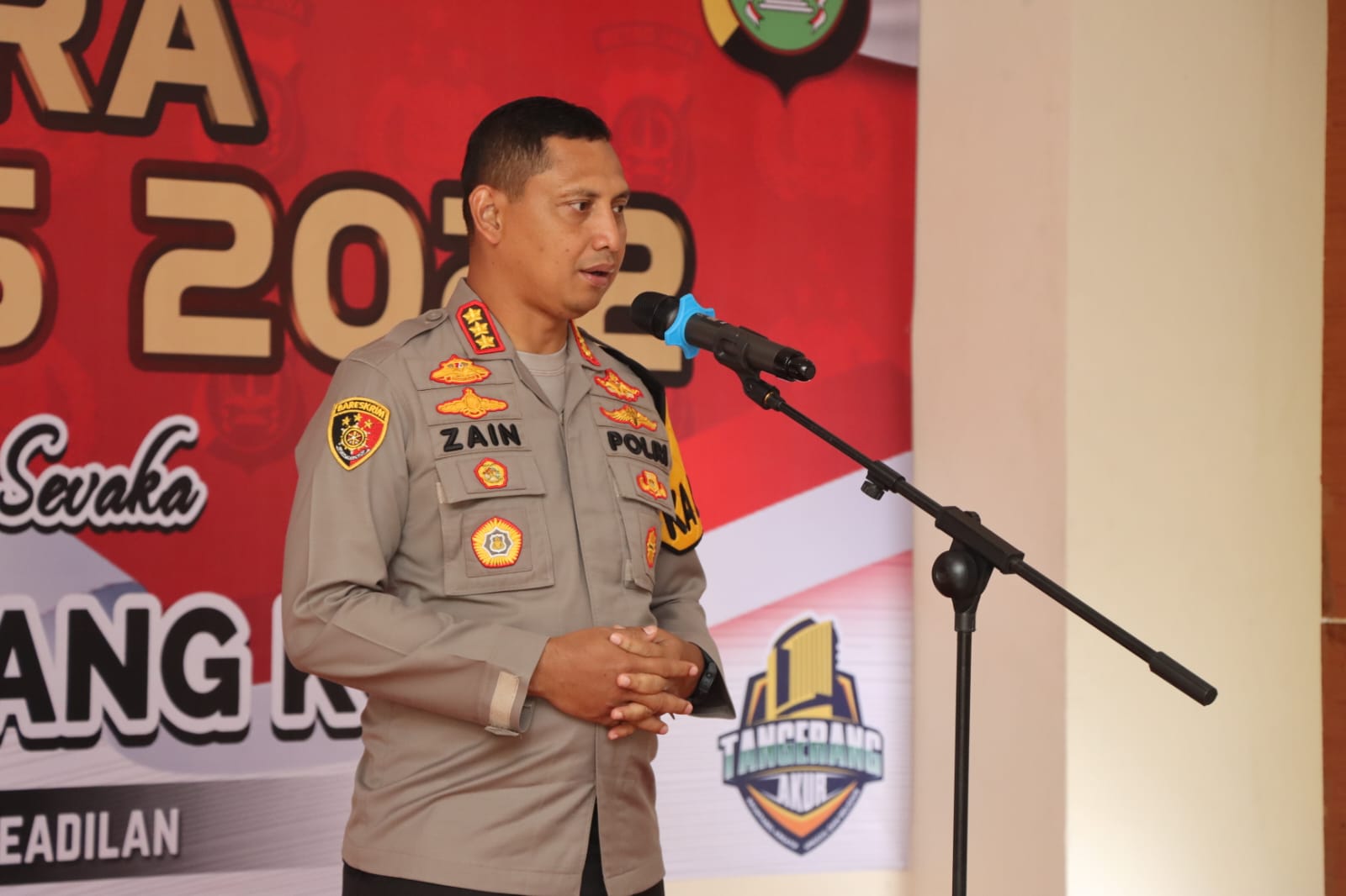 Dalam acara tersebut, Kapolres didampingi Ketua Bhayangkari Cabang Polres Metro Tangerang Kota memberikan tali asih kepada personel Purna Wira Polri dan PNS 2022.