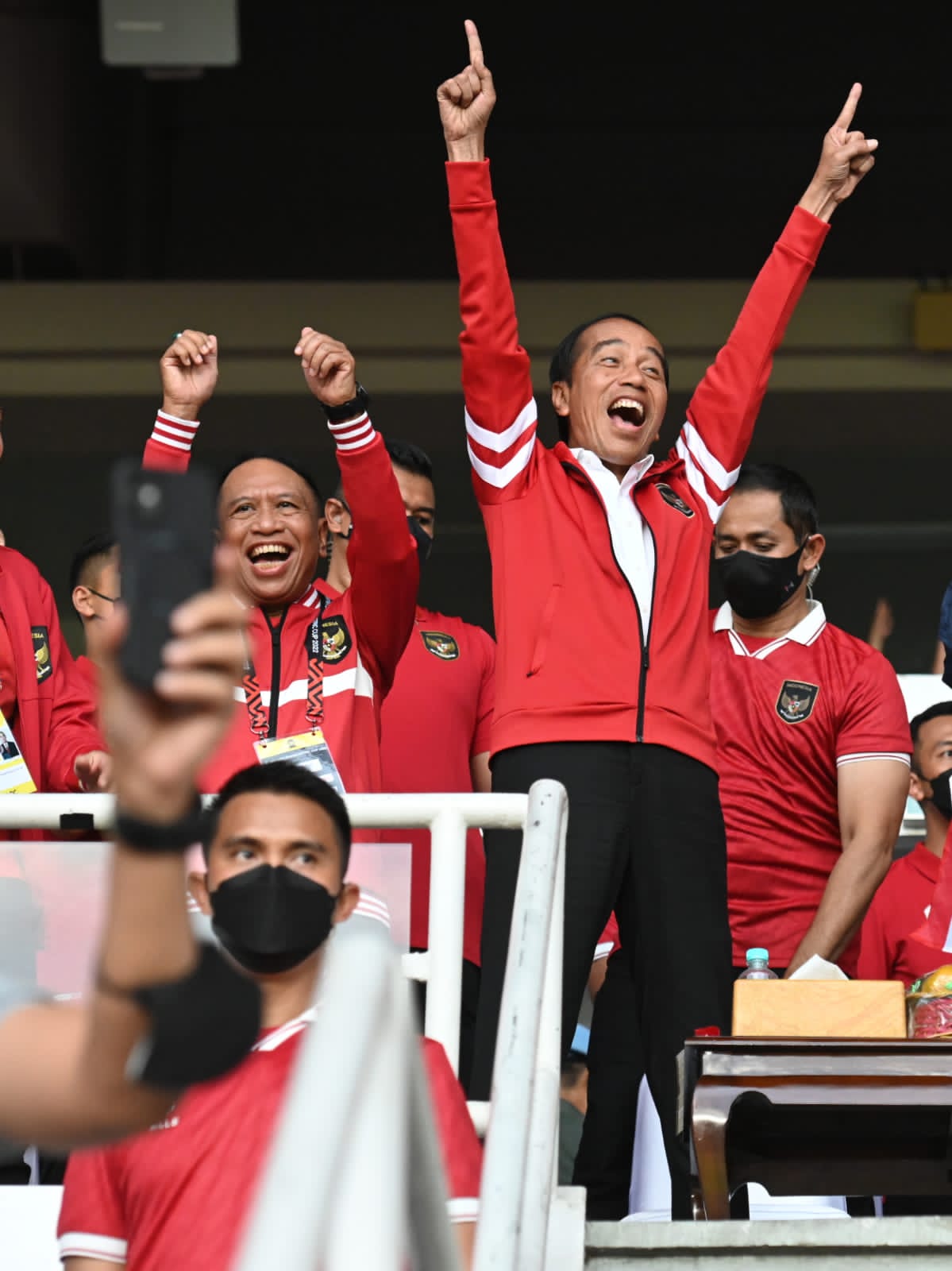 Jakarta (HSB) – Presiden Joko Widodo beserta Ibu Iriana Joko Widodo turut menyaksikan laga Piala AFF antara tim nasional sepak bola Indonesia melawan Thailand di Stadion Utama Gelora Bung Karno, Jakarta, pada Kamis, 29 Desember 2022. Dalam laga tersebut, Tim Merah Putih meraih satu poin setelah bermain imbang 1-1.