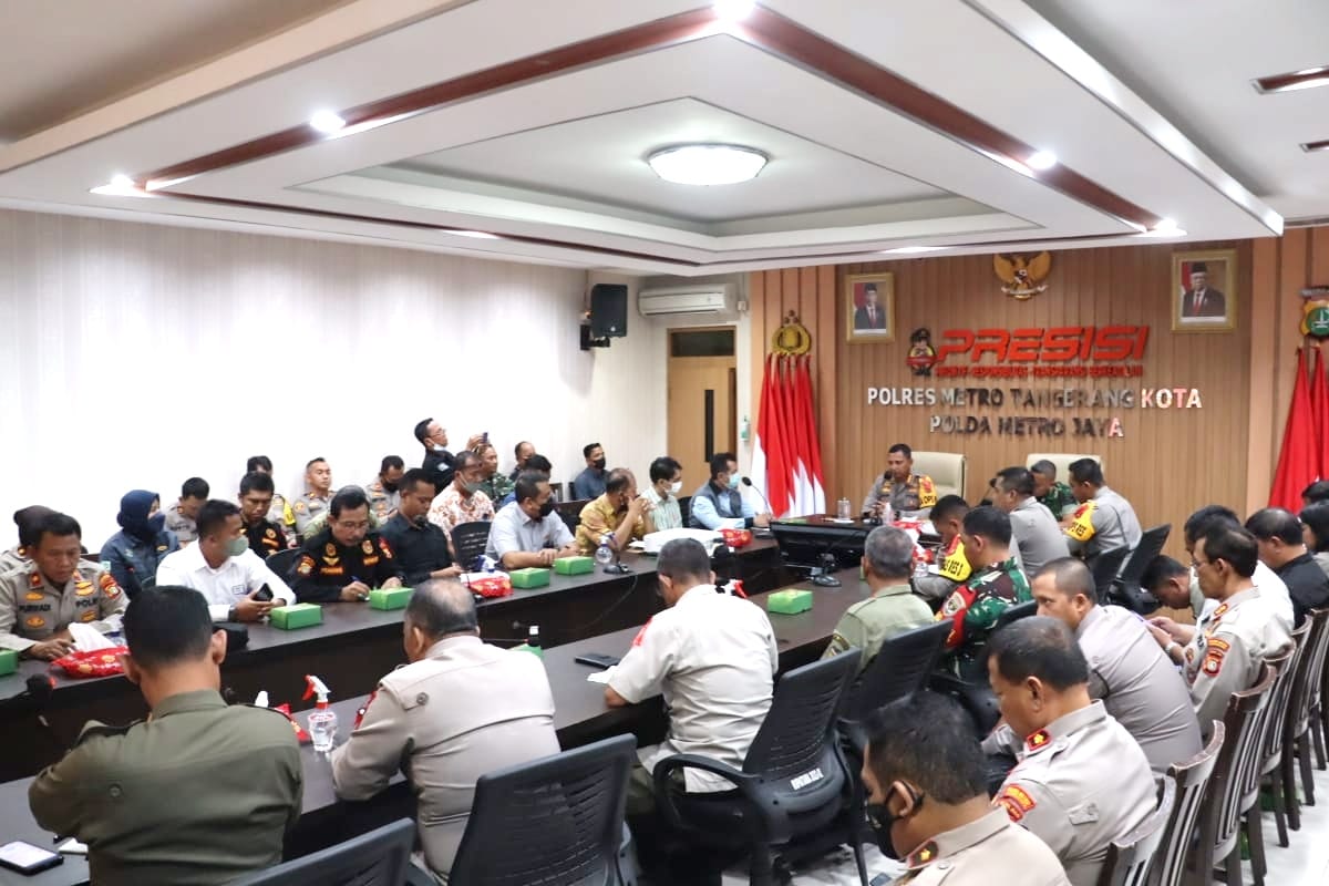 Forkopimda dua wilayah terdiri dari Polres Metro Tangerang Kota bersama Kodim 0506/TGR, Kodim 0510/TRS, Pemerintah Kota dan Kabupaten Tangerang hadir dalam rapat koordinasi persiapan pengamanan malam tahun baru 2023. Rapat di pimpin langsung Kapolres Metro Tangerang Kota Kombes Pol Zain Dwi Nugroho.