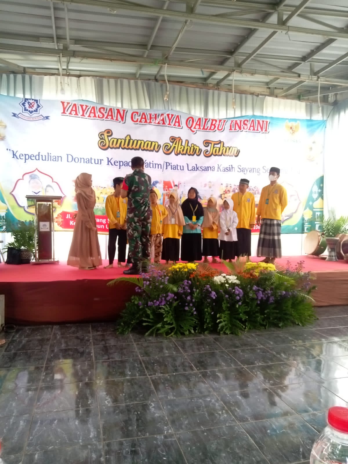 Hadir dalam Kegiatan Santunan Akhir Tahun Yayasan Cahaya Qalbu Insani, Ketua Yayasan Cahaya Qalbu Insani Abdul Syukur, Ketua Panitia Junaidi, Babinsa 2 Desa Karang Satria Sertu Budi Antoro