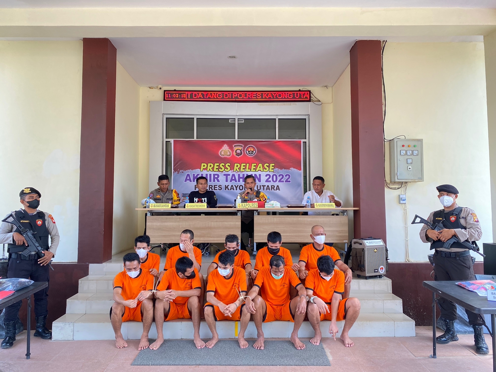 Kayong Utara Kalbar (HSB) – Polres Kayong Utara gelar press release akhir tahun 2022, terkait perkembangan situasi kamtibmas di wilayah Hukum Polres Kayong Utara yang dilaksanakan di ruang Lobi Polres Kayong Utara Jalan Bhayangkara Sukadana,Hari Sabtu 31 Desember 2022.
