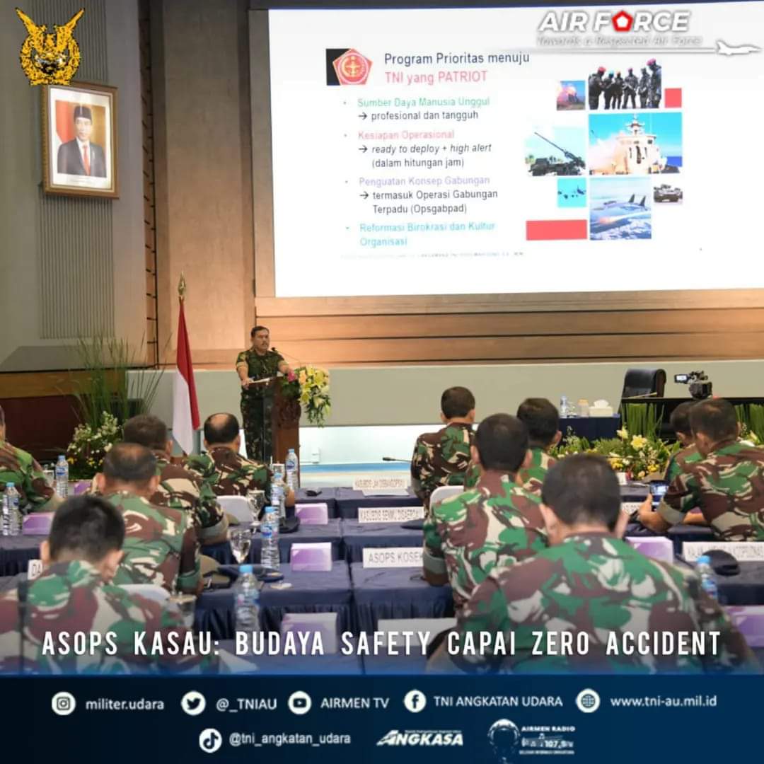 Jakarta (HSB) – Asisten Operasi (Asops) Kasau Marsda TNI M. Khairil Lubis mengatakan zero accident dapat tercapai apabila budaya safety di lingkungan TNI AU dapat diterapkan dengan baik mulai dari pimpinan hingga anggota terbawah.