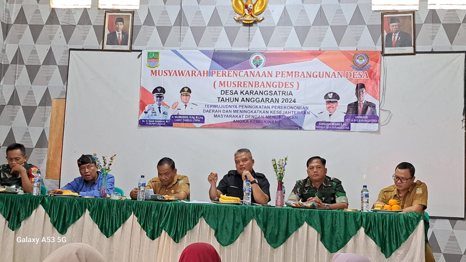 Kegiatan, Rapat Rencana pembangunan Desa Karang Satria, (Musrenbang), Tahun anggaran 2024, Desa Karang Satria, di buka oleh Kepala Desa Karang Satria Haji Zainudin Rezan, dalam sambutannya,