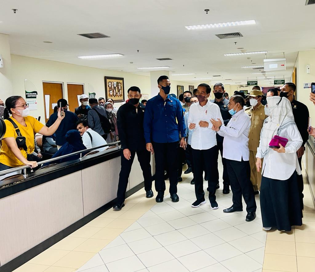 Tiba di RSUD Arifin Achmad, Presiden Jokowi langsung meninjau ruang perawatan kelas III. Di sana tampak beberapa pasien anak yang dirawat dengan fasilitas BPJS.