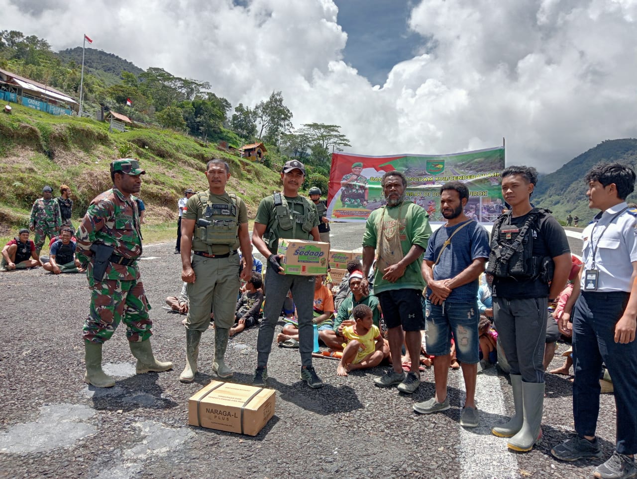 Kiwirok (HSB) – Masyarakat yang telah kembali ke Distrik Kiwirok menyambut dengan penuh antusias kedatangan Bantuan berupa Bahan Makanan dari Panglima Kodam XVII/Cenderawasih Mayjen TNI Muhammad Saleh Mustafa.