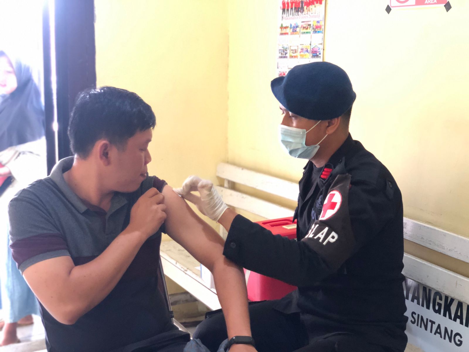 Dalam rangka mendukung pemerintah pusat untuk memutus penyebaran Covid-19 di Indonesia khususnya di Provinsi Kalbar, Satbrimob Polda Kalbar kembali mengerahkan personelnya untuk membantu Polres Sintang melaksanakan program vaksinasi yang mereka laksanakan di Kabupaten Sintang. Kegiatan vaksinasi pada pagi hari ini melibatkan sebanyak tenaga medis yang berasal dari tenaga kesehatan Kabupaten Sintang, Polres Sintang dan juga Satbrimob Polda Kalbar. Dikegiatan vaksinasi ini, Satbrimob Polda Kalbar kembali melibatkan Bharaka Tri Febrianto, S.Kep sebagai tenaga vaksinator untuk memabantu Polres Sintang dan juga tenaga kesehatan Kabupaten Sintang melaksanaksanakan kegiatan vaksinasi ini. Kegiatan vaksinasi ini dilaksanakan di Klinik Polres Sintang.