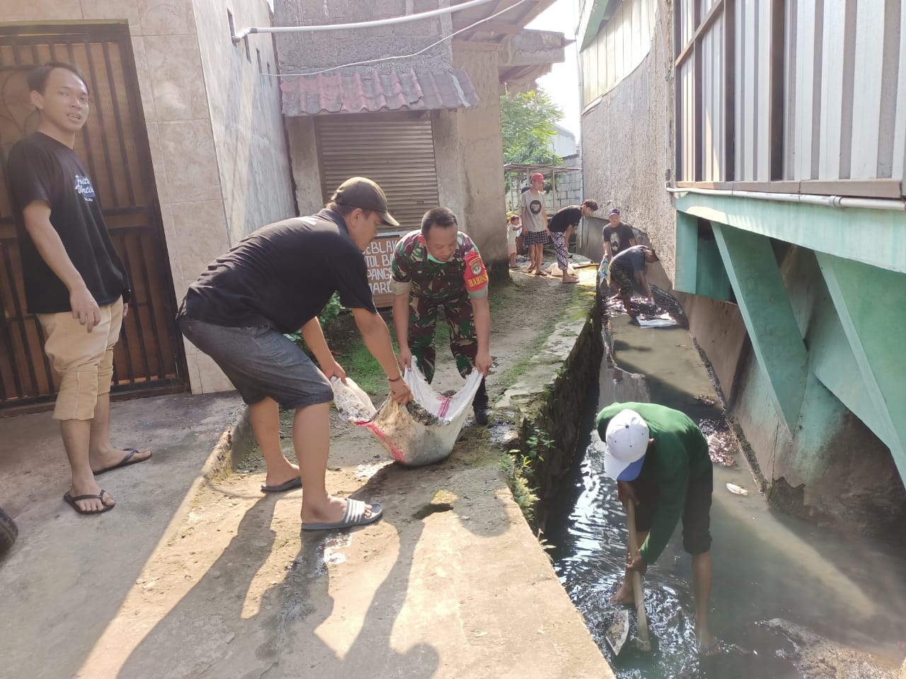Bekasi -Program Kegiatan kerja bakti untuk Pembersihan Drainase / selokan warga di fokuskan Babinsa Koramil 01 Tambun Serda Indra Yudho.