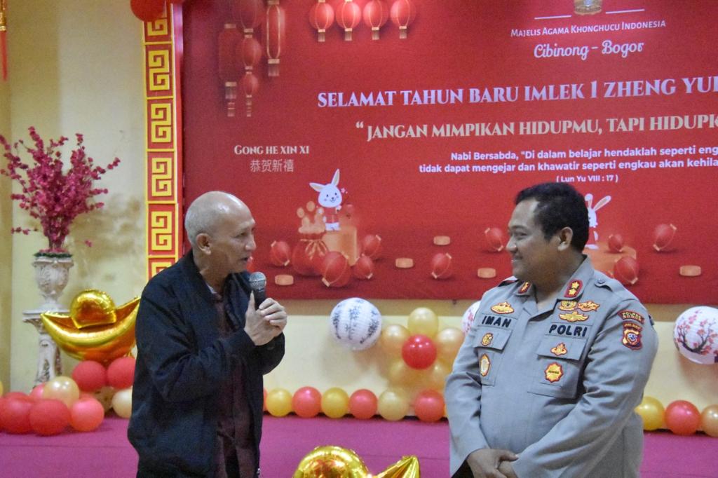 Kapolres Bogor AKBP Dr Iman Imanuddin S.H., S.I.K., M.H bersama jajarannya yang mengelar patroli secara langsung ke kelenteng-kelenteng pun di sambut baik oleh masyarakat yang melaksanakan ibadah di malam hari raya Imlek.
