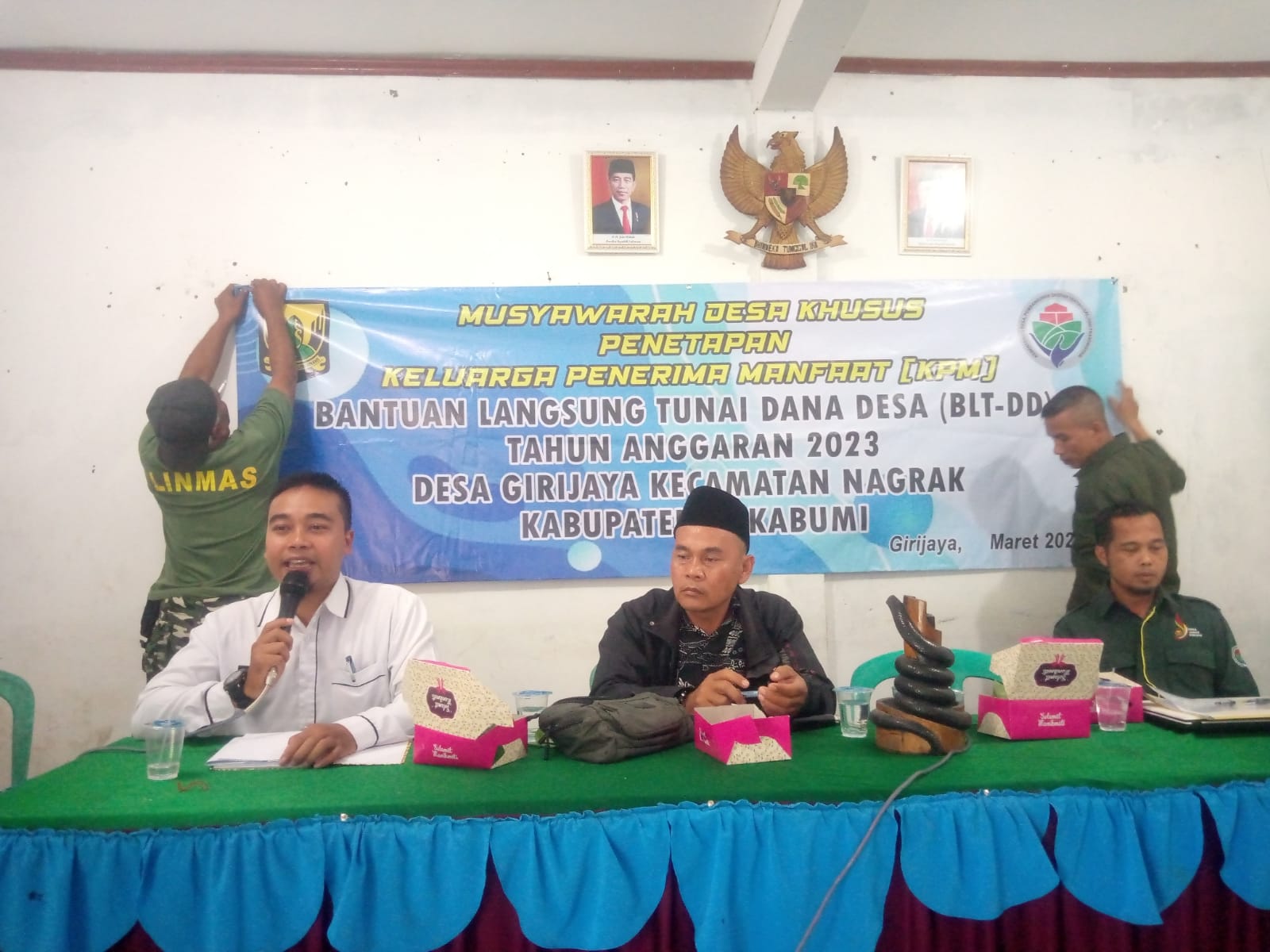 Sukabumi (HSB) – Pemerintah Desa (Pemdes) Girijaya, Kecamatan Nagrak, Kabupaten Sukabumi, Jawa Barat, gelar musyawarah desa khusus (Mudesus) guna menentukan keluarga penerima manfaat program bantuan langsung tunai dana desa (BLT-DD) tahun 2023, pada Rabu (15/03/2023).