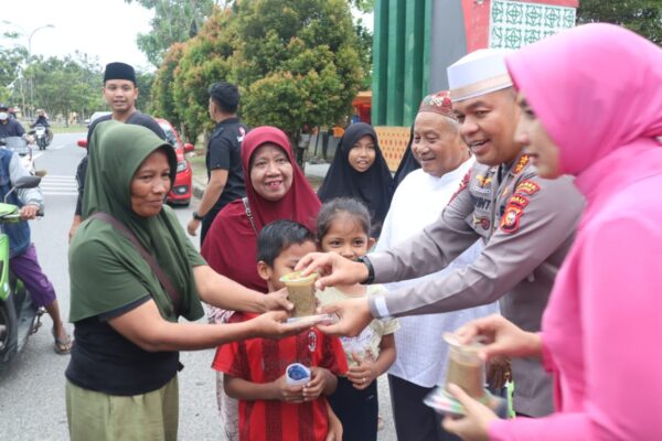 Program pembagian takjil diinisiasi dan dipimpin langsung oleh Kapolres Pelalawan AKBP Suwinto SH SIK dan dihadiri Ketua Bhayangkari Cabang Pelalawan, Ny Yetty Suwinto, Kasat Intelkam AKP Rudi Nababan, tokoh masyarakat H Dasril Maskar dan personil.