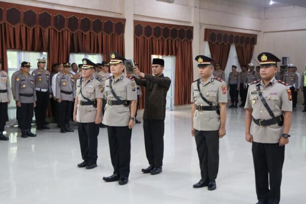 Upacara Sertijab dipimpin Kapolres Kuansing, AKBP Rendra Oktha Dinata SIK MSi yang kemudian mengambil sumpah jabatan.