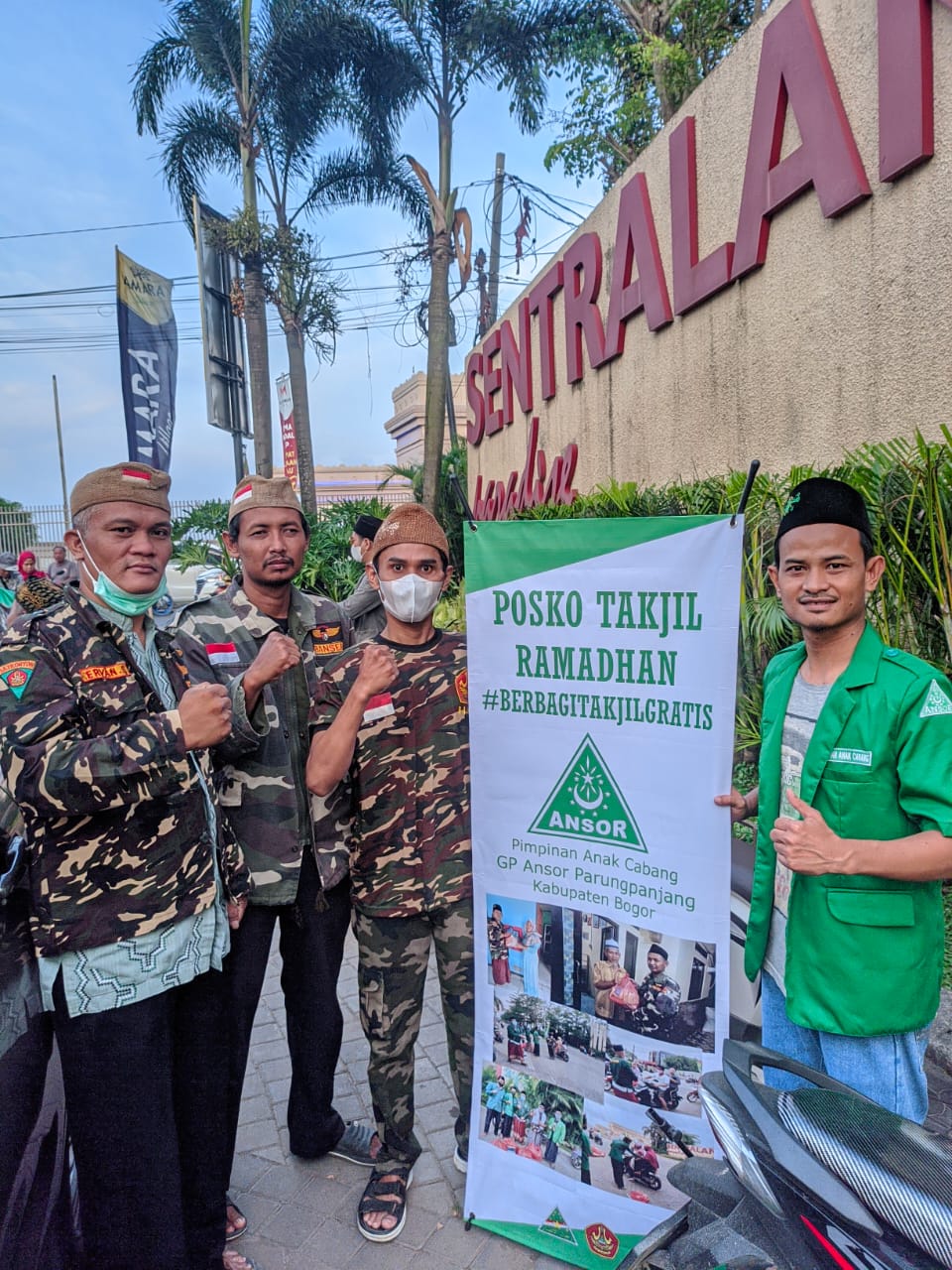 Harian Sinar Bogor | Bogor – Pimpinan Anak Cabang (PAC) Gerakan Pemuda Ansor Kecamatan Parungpanjang Kabupaten Bogor melakukan aksi giat sosial yaitu membuka posko untuk berbagi takjil kepada masyarakat, di Sentraland Desa Kabasiran, Jumat sore (07/4/2023).