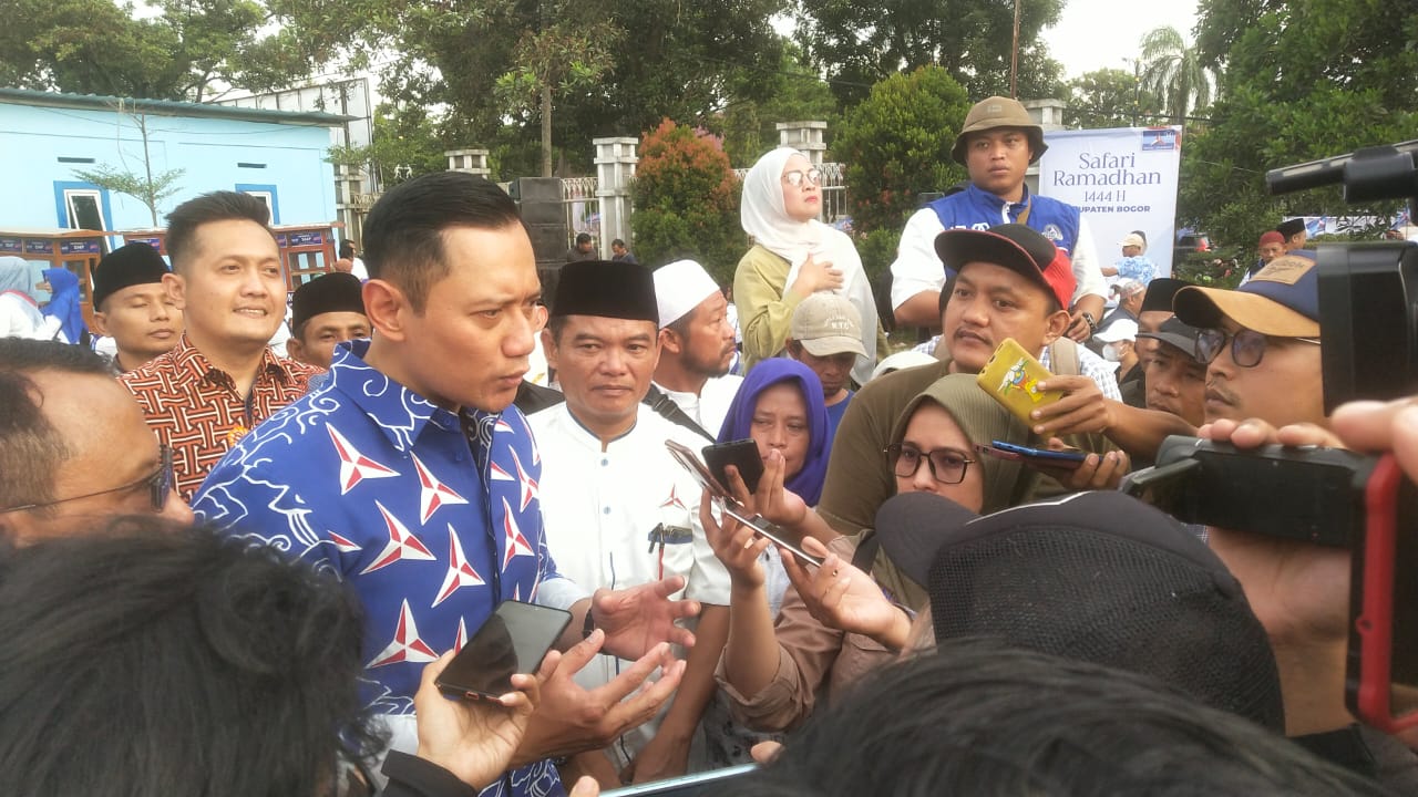 Bogor Kab – Ketua Dewan Pimpinan Pusat (DPP) Partai Demokrat Agus Harimurti Yudhoyono (AHY) menggelar Safari Ramadhan di Kabupaten Bogor sambil membagikan puluhan gerobak untuk pedagan kaki lima (PKL) dan sembako kepada masyarakat di Kantor Dewan Pimpinan Cabang (DPC) Partai Demokrat Kabupaten Bogor, Jalan Tegar Beriman, Kecamatan Cibinong.