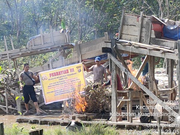 “Tepatnya di Desa Banjar Lopak Kecamatn Benai, pada saat sampai dilokasi personil melihat sedang adanya aktivitas PETI dan pada saat itu juga para pelaku aktifitas mengetahui kedatangan personil sehingga pelaku PETI langsung melarikan diri dengan meninggalkan rakit PETI nya. Selanjutnya personil Polsek Benai langsung mendatangi rakit dompeng untuk dilakukan penindakan,” jelas Kapolsek Benai.