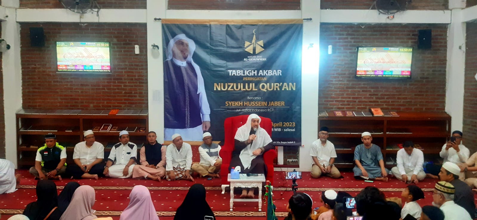 BOGOR (HSB) – Ratusan kaum muslimin dihari ke 25 Ramadhan 1444 H, hadiri kegiatan Tabligh Akbar dan Peringatan Nuzulul Quran yang di gelar oleh DKM Al-Ukhuwwah Komplek Vila Bogor Indah 5, Cluster Rajawali, Desa Pasir Jambu, Kecamatan Sukaraja, Kabupaten Bogor pada Minggu (16/4/23).
