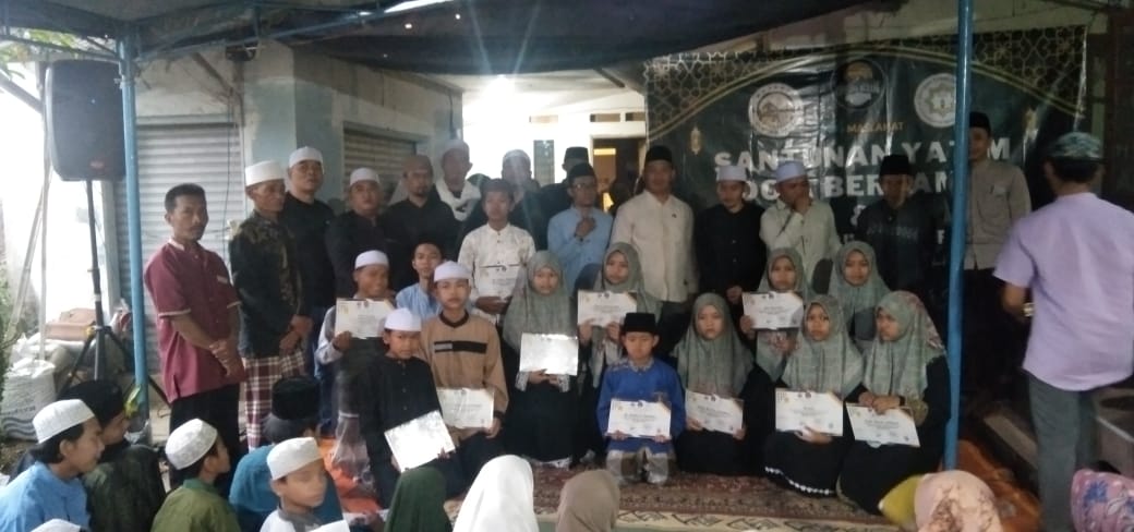 Pada kegiatan ini ada penyerahan beasiswa pendidikan bagi anak yang hafal surat dalam juz 30 Al-Qur’an. Santunan tersebut berasal dari Donatur (BSI) Maslahat, Donatur Mujahid gunung salak, dan Donatur Paguyuban Cipelang Herang.