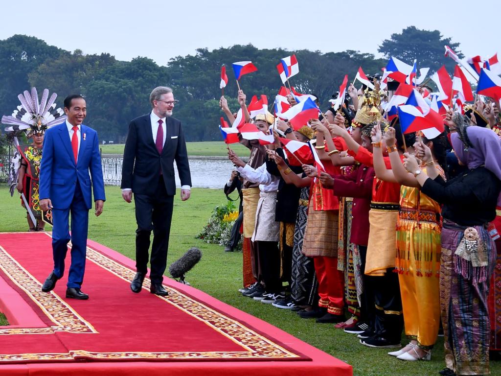 Hariansinarbogor.com || Presiden Joko Widodo menyambut kunjungan resmi Perdana Menteri (PM) Republik Ceko Petr Fiala, di Istana Kepresidenan Bogor, Provinsi Jawa Barat, pada Selasa, 18 April 2023. PM Petr Fiala bersama delegasi terbatas tiba di Istana Bogor sekitar pukul 16.10 WIB, diiringi oleh pasukan Nusantara, pasukan berkuda, dan korps musik Pasukan Pengamanan Presiden (Paspampres).