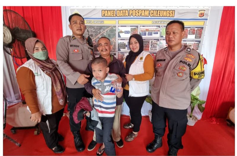 Polres Bogor (HSB) – Personel pengamanan operasi ketupat Polsek Cileungsi Polres Bogor Polda Jabar berhasil pertemukan seorang anak berusia 5 tahun yang terpisah dengan orang tuanya saat hendak mudik menuju Cisolok Sukabumi, di Pos Pengamanan Operasi Ketupat Polsek Cileungsi Polres Bogor Polda Jabar yang berada di Jalan Raya Cileungsi- Jonggol, Pada Kamis 20 April 2023.
