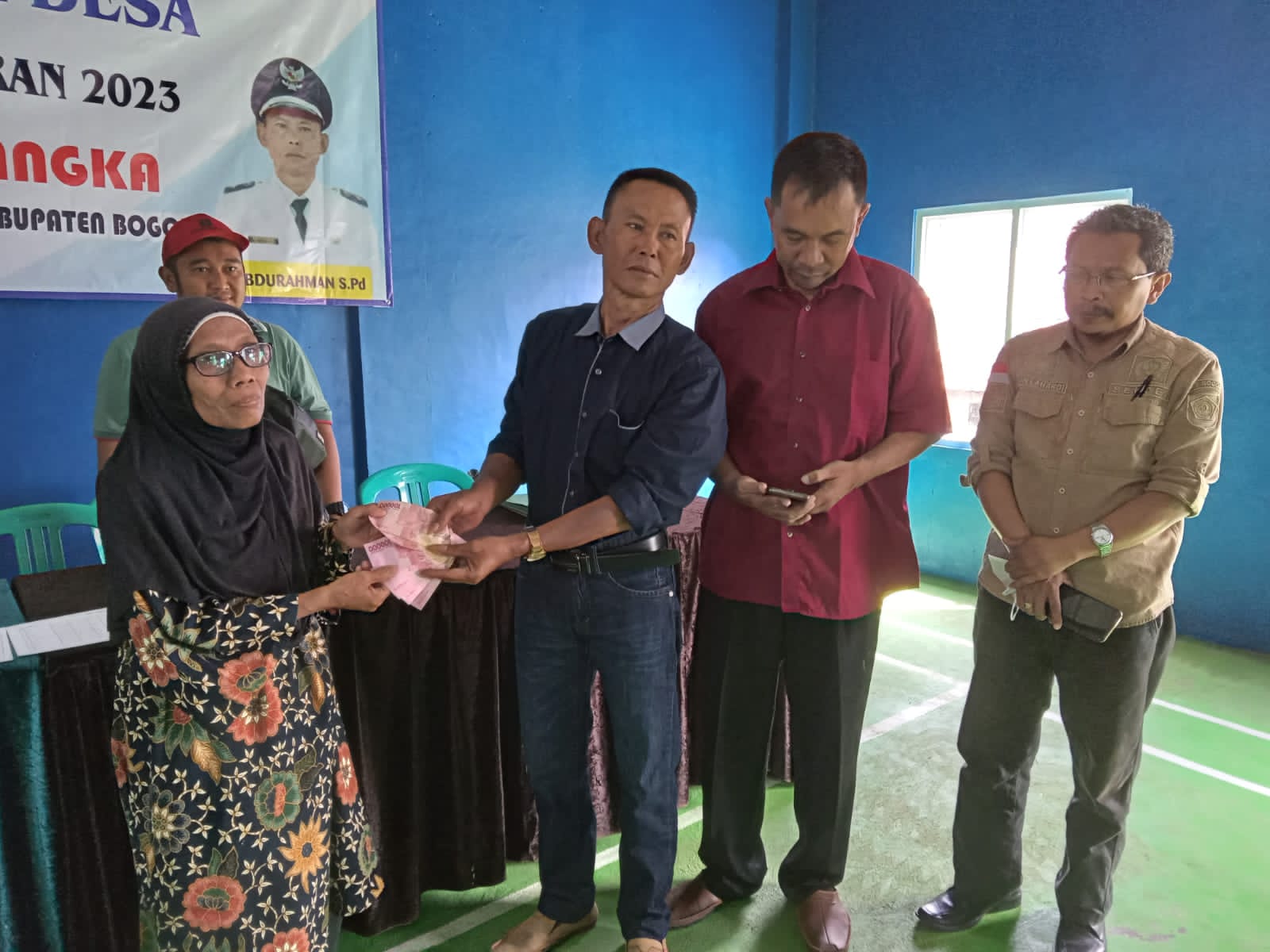 Bogor (HSB) – Sebanyak 118 Keluarga Penerima Manfaat (KPM) Desa Cinangka, Kecamatan Ciampea ,kabupaten Bgor. menerima Bantuan Tunai Langsung (BLT-DD)Tahap 1, Tahun Anggaran 2023. Bantuan diserahkan langsung di aula Kantor Desa cinangka. Kamis (20/04/23).