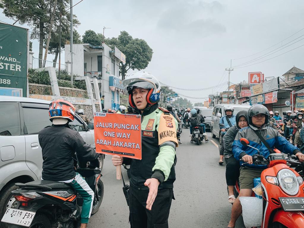 Yang mana kedaraan yang memasuki kawasan puncak tersebut pun masih di dominasi oleh kendaraan roda dua dan roda empat. Skema pemberlakukan sistem one way pun arah bawah masih di berlakukan, pihak kepolisan dari sat lantas Polres Bogor masih melakukan pengaturan dan pengamanan arus lalu lintas.