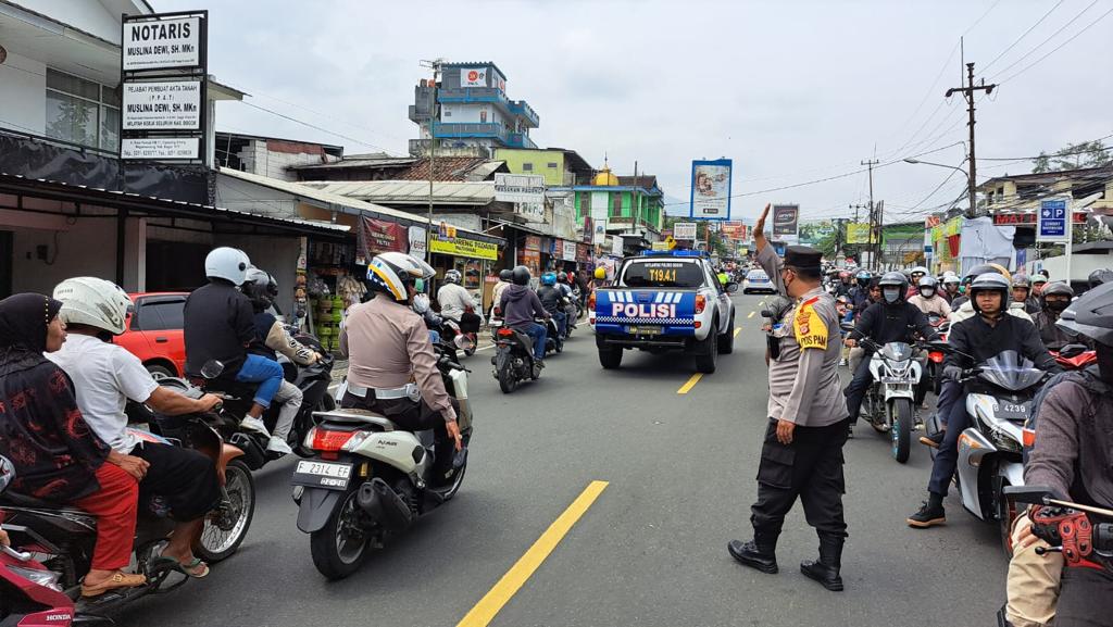 Polres Bogor (HSB) – Pengamanan arus lalu lintas di kawasan Megamendung Puncak Kabupaten Bogor Terus di lakukan oleh personil pengamanan operasi ketupat Loadaya 2023 Polres Bogor, pada Senin 1 Mei 2023.