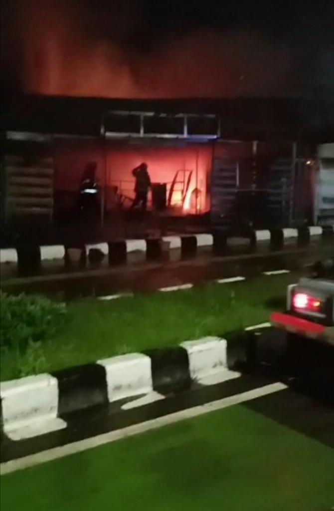 Api sendiri dapat di padamkan setelah …6 unit mobil kebakaran di datangkan untuk memadamkan kobaran api, sementara itu dari penyelidikan yang kita lakukan di duga penyebab kebakaran tersebut diakibatkan adanya konsleting arus listrik.