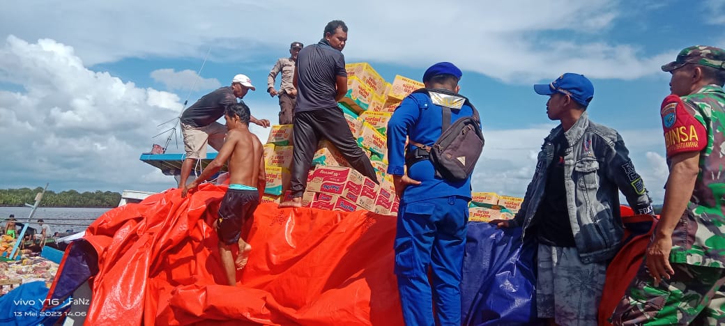 Amankan TKP Tenggelamnya Kapal KM. HASIL UTAMA, Ditpolairud Polda Kalbar Bantu Evakuasi Barang Dagangan Kelontong dan Sembako