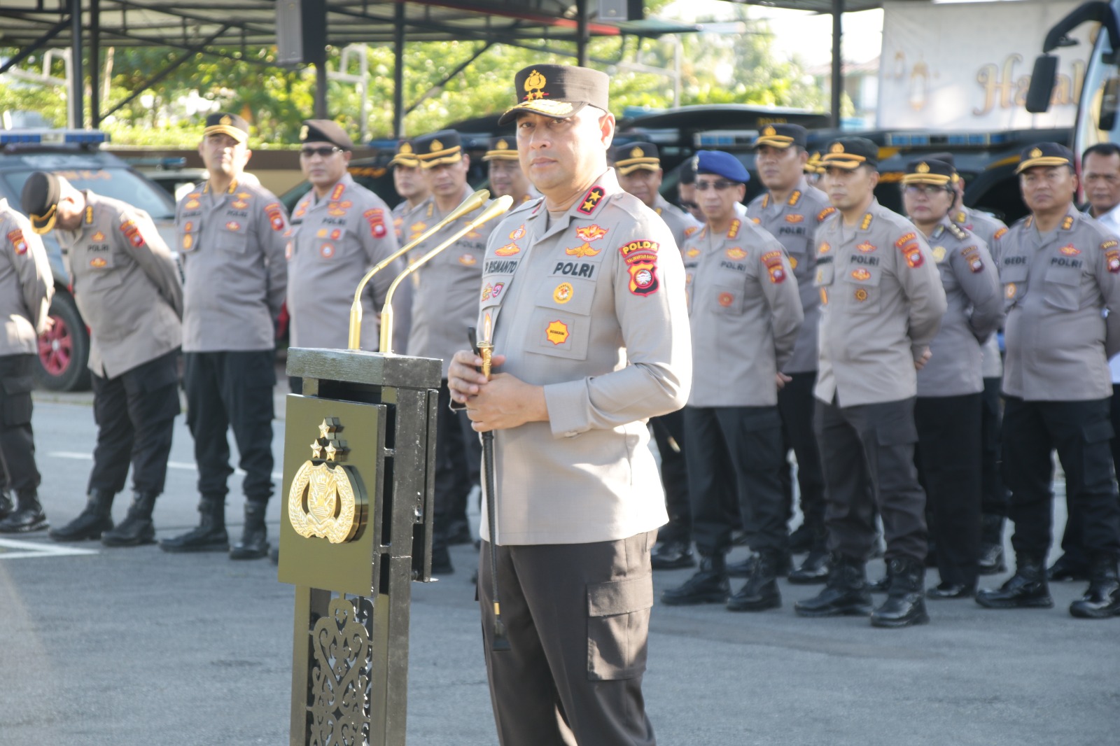PONTIANAK, POLDA KALBAR (HSB) – Kepala Kepolisian Daerah Kalimantan Barat Irjen Pol Pipit Rismanto memimpin pelaksanaan apel pagi personel Polda Kalbar yang digelar di Lapangan Jananuraga Polda Kalbar, Senin (15/5).
