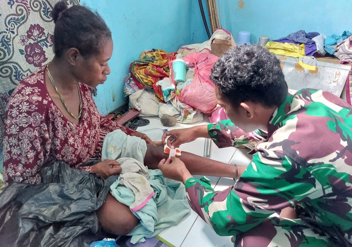 Sebagaimana dilakukan prajurit TNI dari Satgas Yonif 143/TWEJ Pos Kawe yang aktif memberikan layanan kesehatan di Pos maupun Door to door kepada warga masyarakat di Kampung Kawe, Distrik Awinbon, Kab. Pegunungan Bintang, Papua Pegunungan, Minggu (14/05/2023).