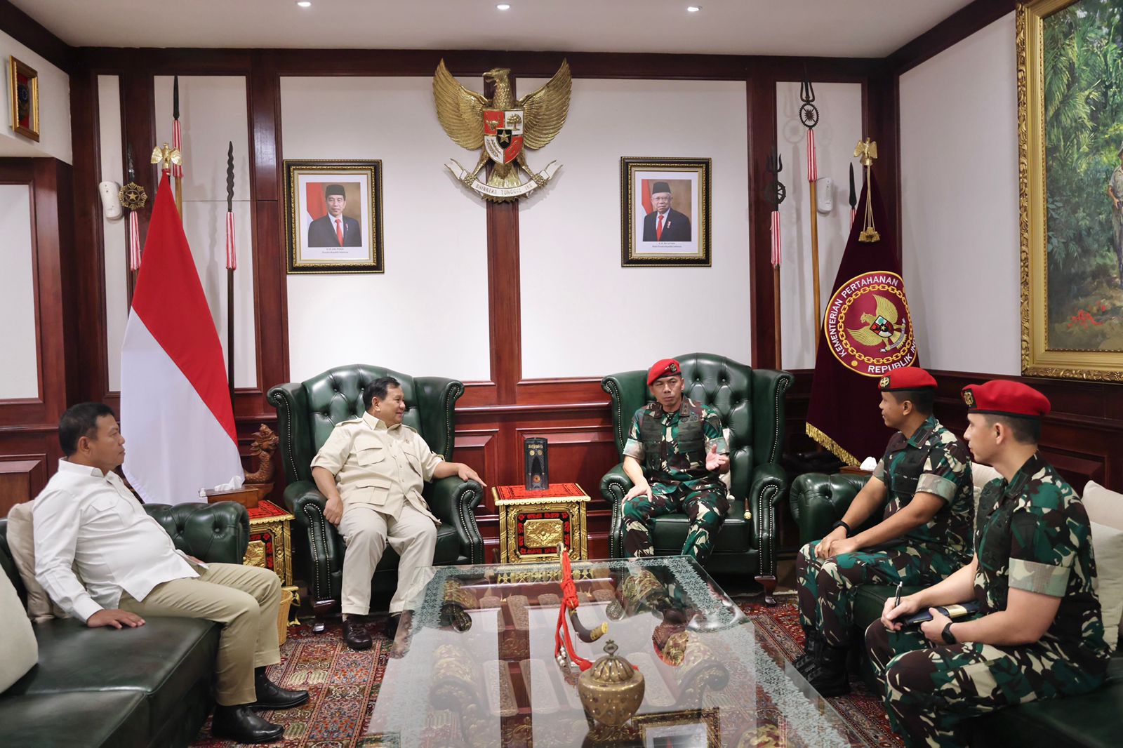 Jakarta (HSB) – Menteri Pertahanan Prabowo Subianto menerima kunjungan Danjen Kopassus Mayjen TNI Deddy Suryadi di Kementerian Pertahanan, Rabu (17/5/2023).