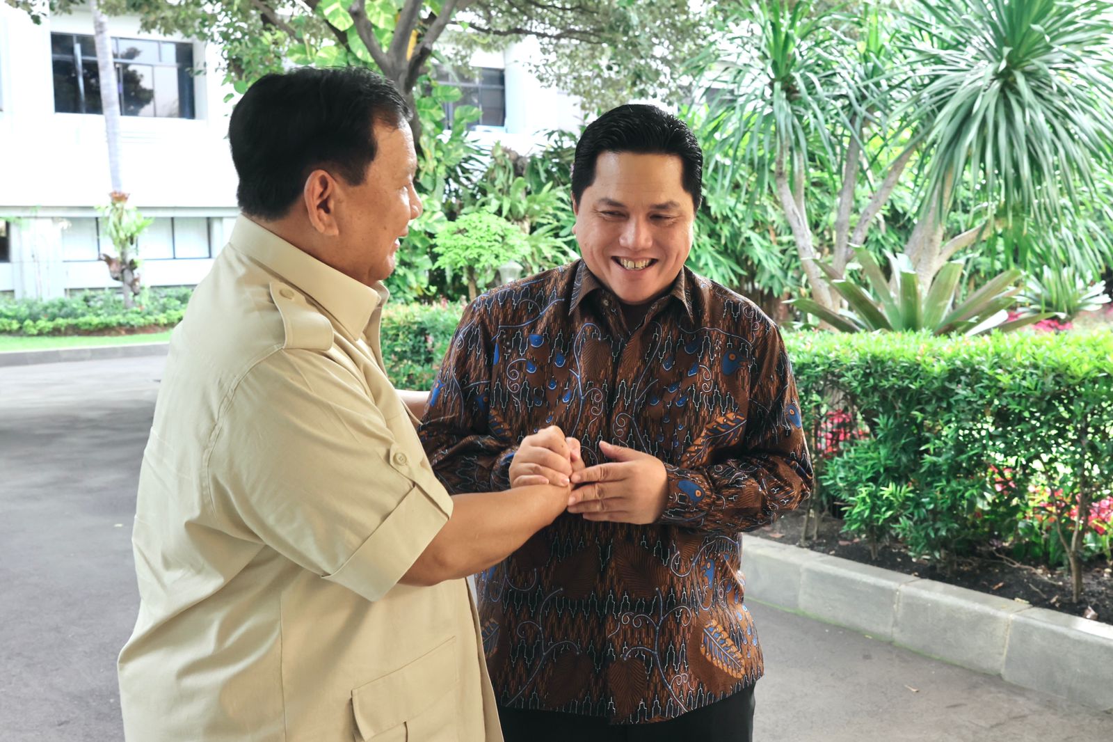“Selamat ya.. selamat, aduh luar biasa nih, luar biasa,” kata Prabowo sambil menepuk-nepuk bahu Erick.