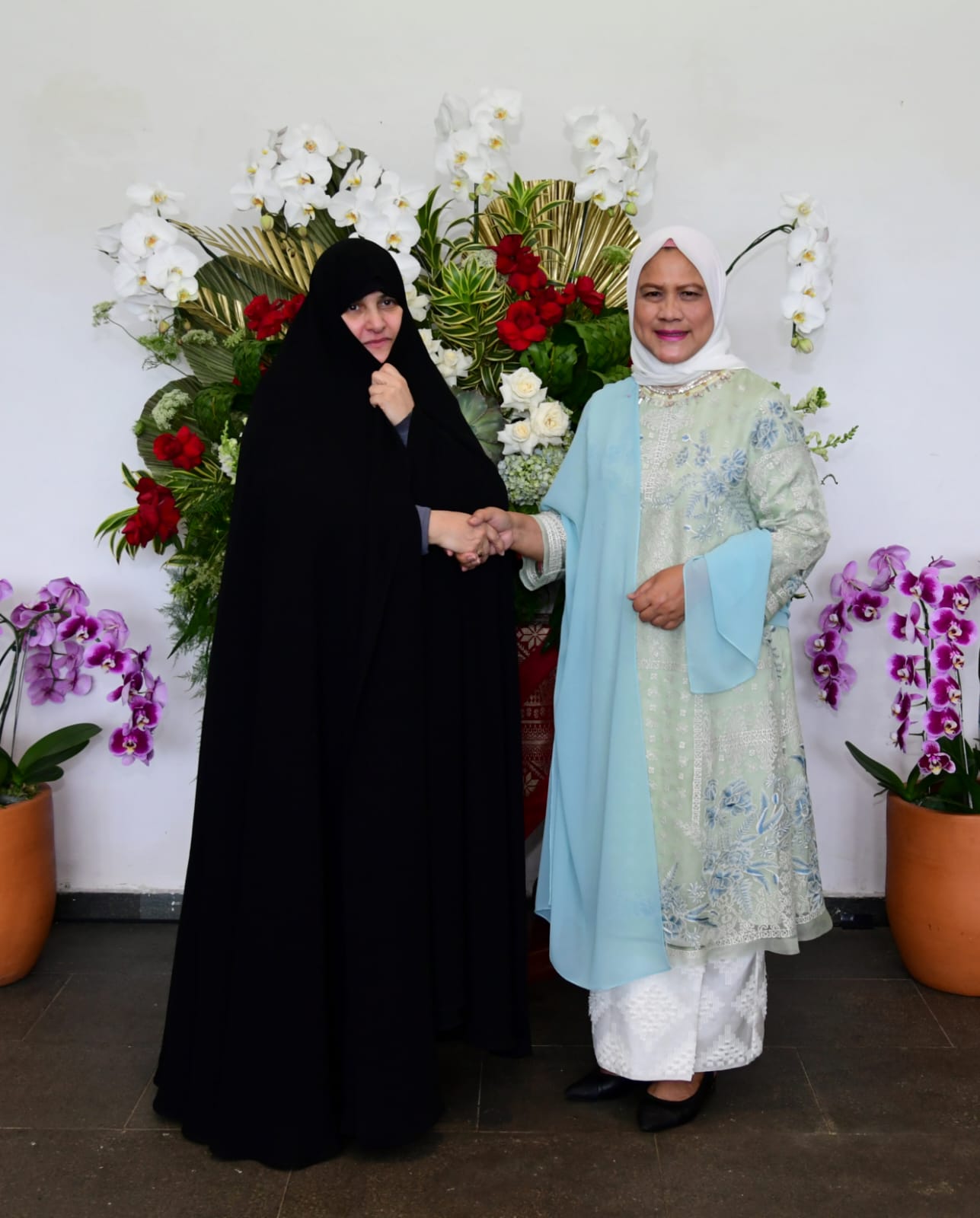 Selama menikmati jamuan minum teh bersama, Ibu Iriana dan Madam Jamileh tampak berbincang-bincang dalam suasana hangat dan bersahabat. Usai jamuan minum teh, Ibu Iriana kemudian mengantarkan Madam Jamileh yang akan melanjutkan perjalanan untuk melakukan kegiatan selanjutnya.(Red)