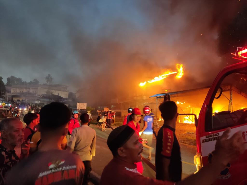 Kobaran api yang muncul sekitar pukul 17.30 Wib tersebut lebih kurang menghanguskan total 10 (sepuluh) bangunan yang terdiri dari 6 (enam) ruko dan 4 (empat) bangunan semi permanen
