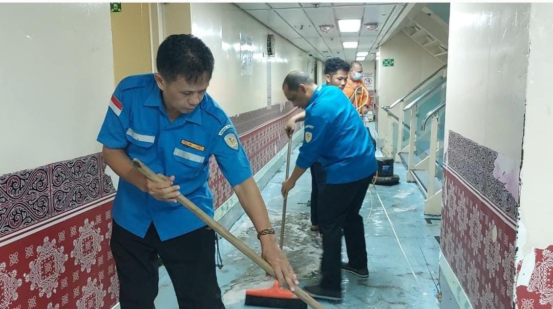 “Pembersihan ini kita lakukan guna membasmi serangga dan juga mempererat tali silahturahmi bersama penumpang km bukit siguntang bersama perwira kapal ,ABK kapal dan petugas kebersihan kapal”,imbuhnya.