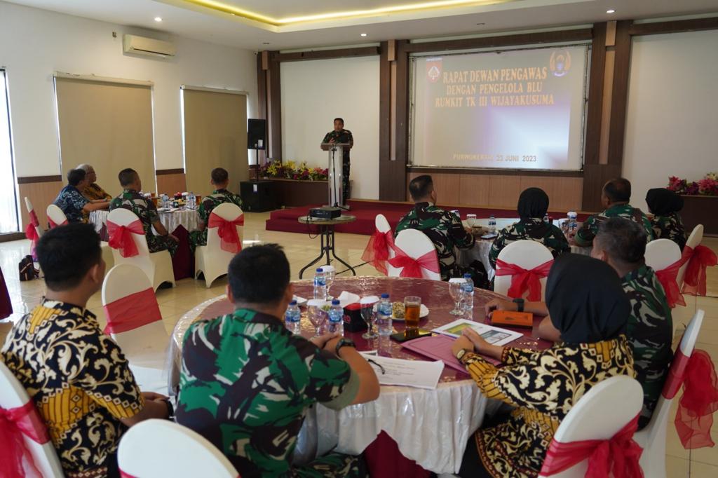 Danrem 071/Wijayakusuma Kolonel Czi Mohammad Andhy Kusuma, S.Sos., M.M., M.Han., yang juga selaku Ketua Dewan Pengawas Rumkit TK-III 04.06.01 Wijayakusuma Purwokerto dalam penyampaiannya menyampaikan agar Rumkit Wijayakusuma mempunyai program unggulan seperti Rumkit TNI lainnya.