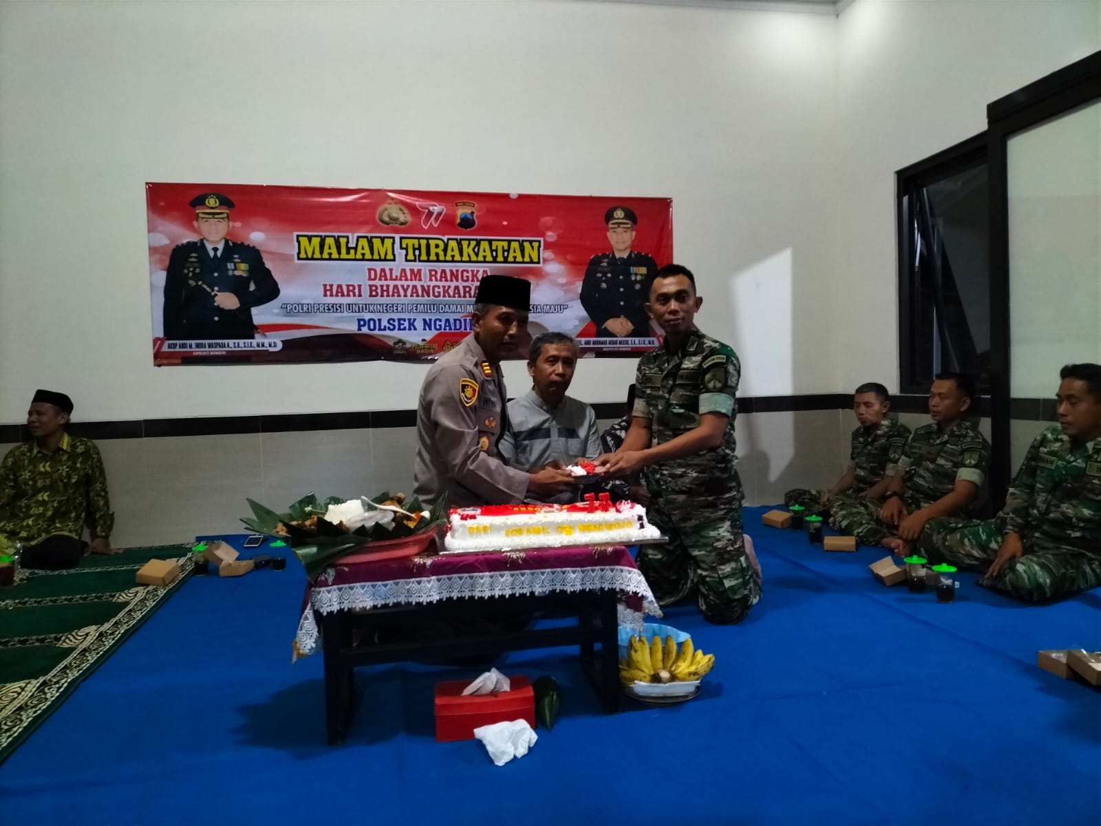 Jum’at(30/6/23) Malam, seperti yang dilakukan oleh Danramil 09/Giritontro Kapten Inf Agus Priyanto, dalam kesempatan malam tirakatan tersebut dirinya memimpin langsung anggotanya dengan memberikan Tumpeng ulang tahun dan juga ucapan selamat Hari Ulang Tahun kepada Jajaran Polsek Giritontro.