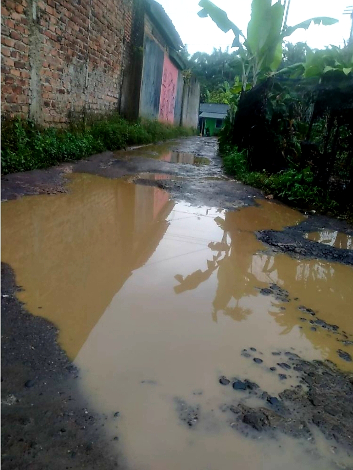 Tidak seperti di tempat-tempat lain, Jalan nya sudah bagus-bagus hitam aspal, bahkan jalan gang nya juga sudah banyak di cor, sementara disini jalan sudah pada rusak, jalan lingkungan masih tanah sehingga kalau waktu hujan selain menimbulkan genangan air berlumpur, seperti jalan masuk ke perkebunan.