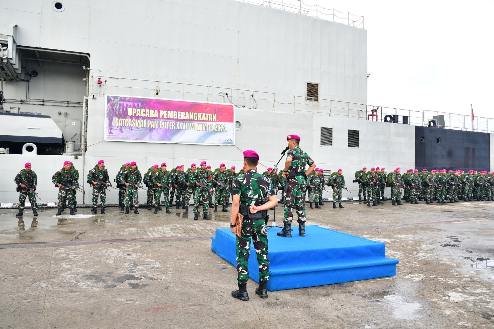 Pada kesempatan tersebut prajurit Pasmar 3 yang tergabung Pam Puter XXVII dibawah pimpinan Lettu Mar Yusak Rumaseb diangkut menggunakan KRI Teluk Bintuni-520 diberangkatkan menuju Pulau Fani dan Fanildo yang berbatasan langsung dengan negara Palau serta Pulau Meatimiarang yang berbatasan dengan Timor Leste (Australia).