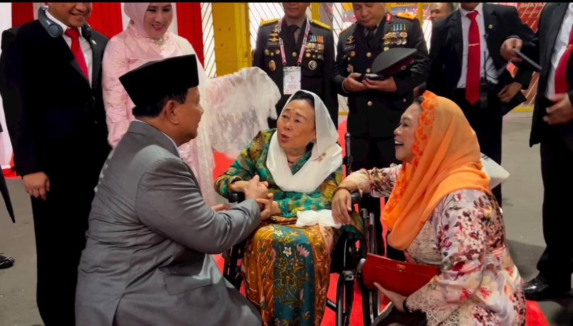 Prabowo menghampiri Sinta yang berada di kursi roda didampingi oleh Yenny Wahid.