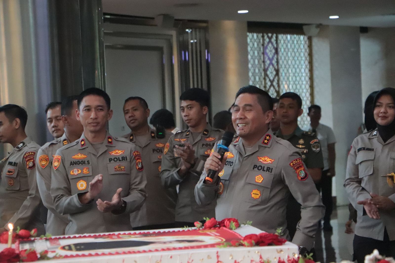 Lanjut, pada kesempatan yang sama Pangdam Jaya Mayjen Mohamad Hasan mengatakan kita datang ke Polda ini bukan sekedar merayakan ulang tahun tetapi juga mempertontonkan sebuah suasana yang membuat Jakarta lebih tenang dan kedepan juga kita menghadapi tahun politik ini kita bisa menjaga stabilitas Jakarta Lebih aman lagi dan juga lebih tenang lagi.