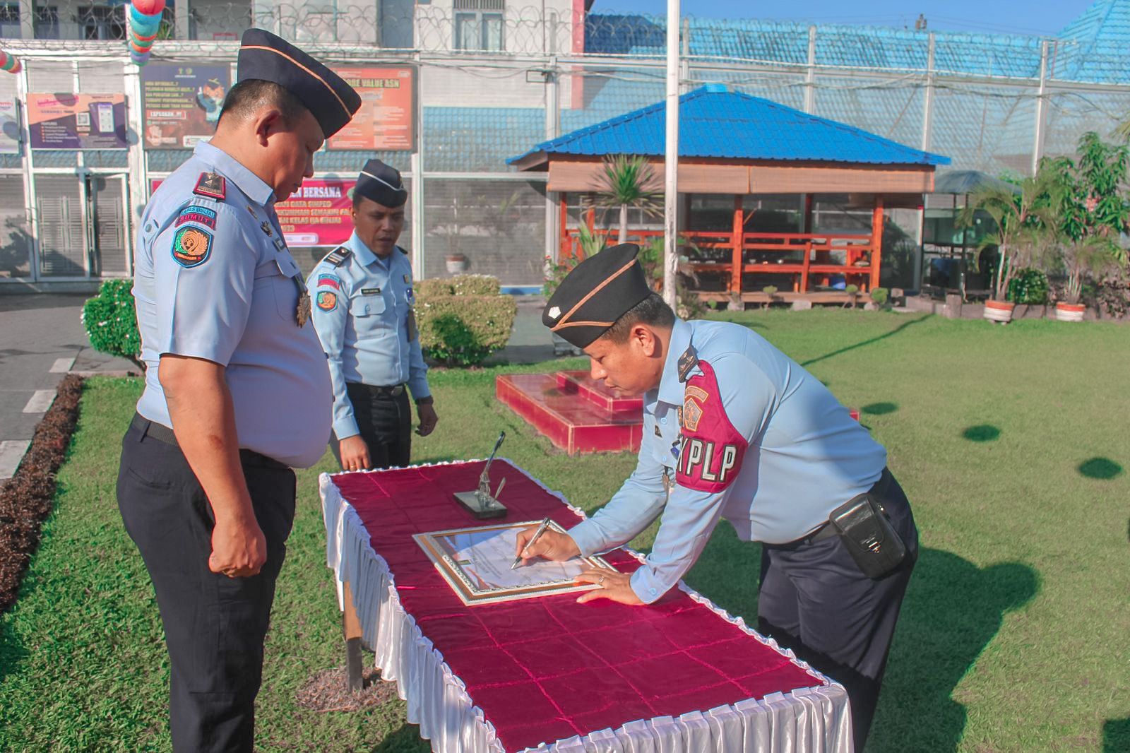 Binjai (HSB) – Pada Selasa Pagi Seluruh Petugas Lapas Kelas IIA Binjai Kanwil Kemenkumham Sumatera Utara melaksanakan Penandatanganan Komitmen Bersama Transformasi Pemutakhiran Data Simpeg Kemenkumham yang dikemas dalam Apel Pagi Lapas Binjai, Selasa (04/07/2023).