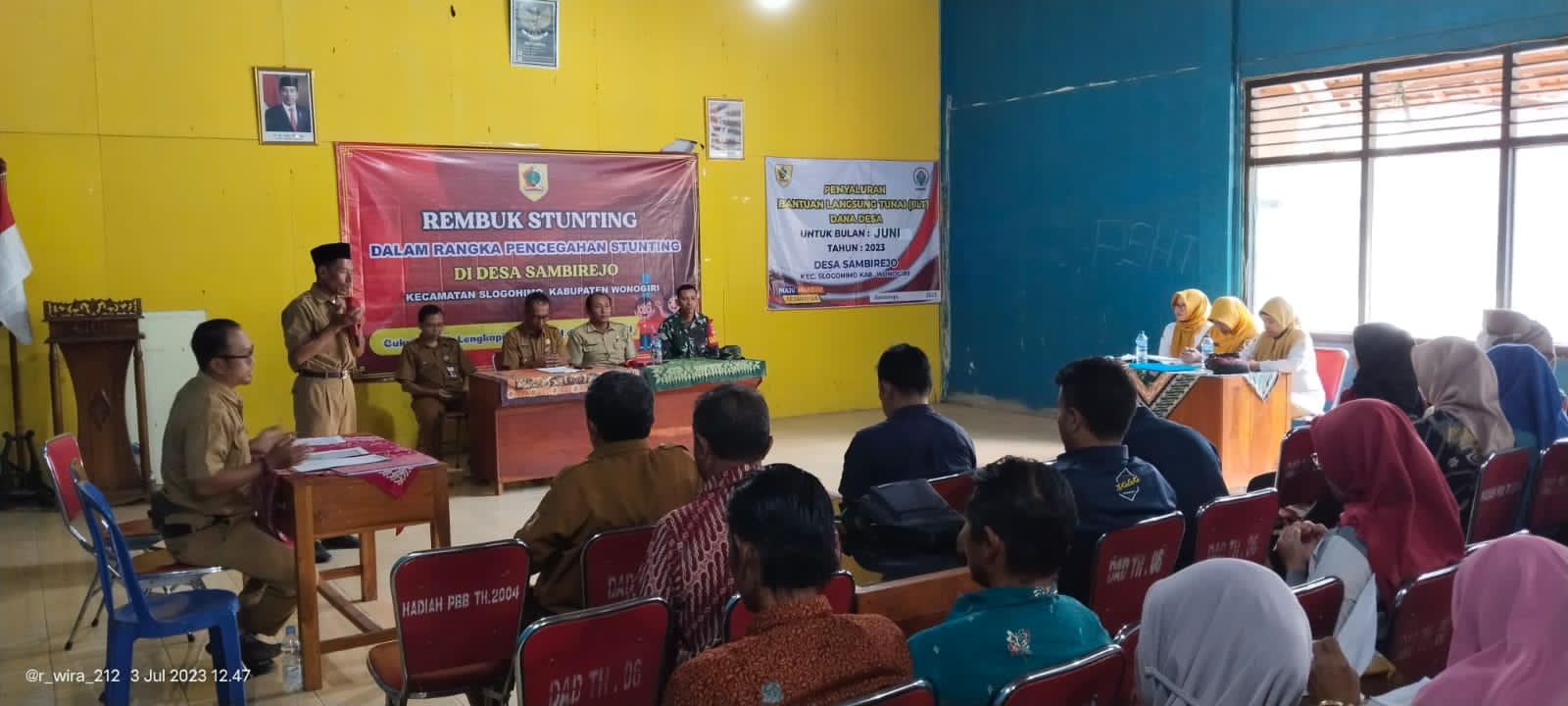 Selasa(4/7/23), Kegiatan rembuk stunting dilaksanakan diantaranya di Desa Watusomo, Desa Pandan, Desa Padarangin dan Desa Sambirejo yang bertempat di Balai Desa masing-masing dan dihadiri oleh Camat Slogohimo Agus Pramono, ahli Gizi Puskesmas Slogohimo, Kepala Desa, Babinsa masing-masing desa, Bhabinkamtibmas, Bidan Desa, PLKB, PKH, Kader Posyandu, Tokoh Masyarakat dan Karang Taruna.
