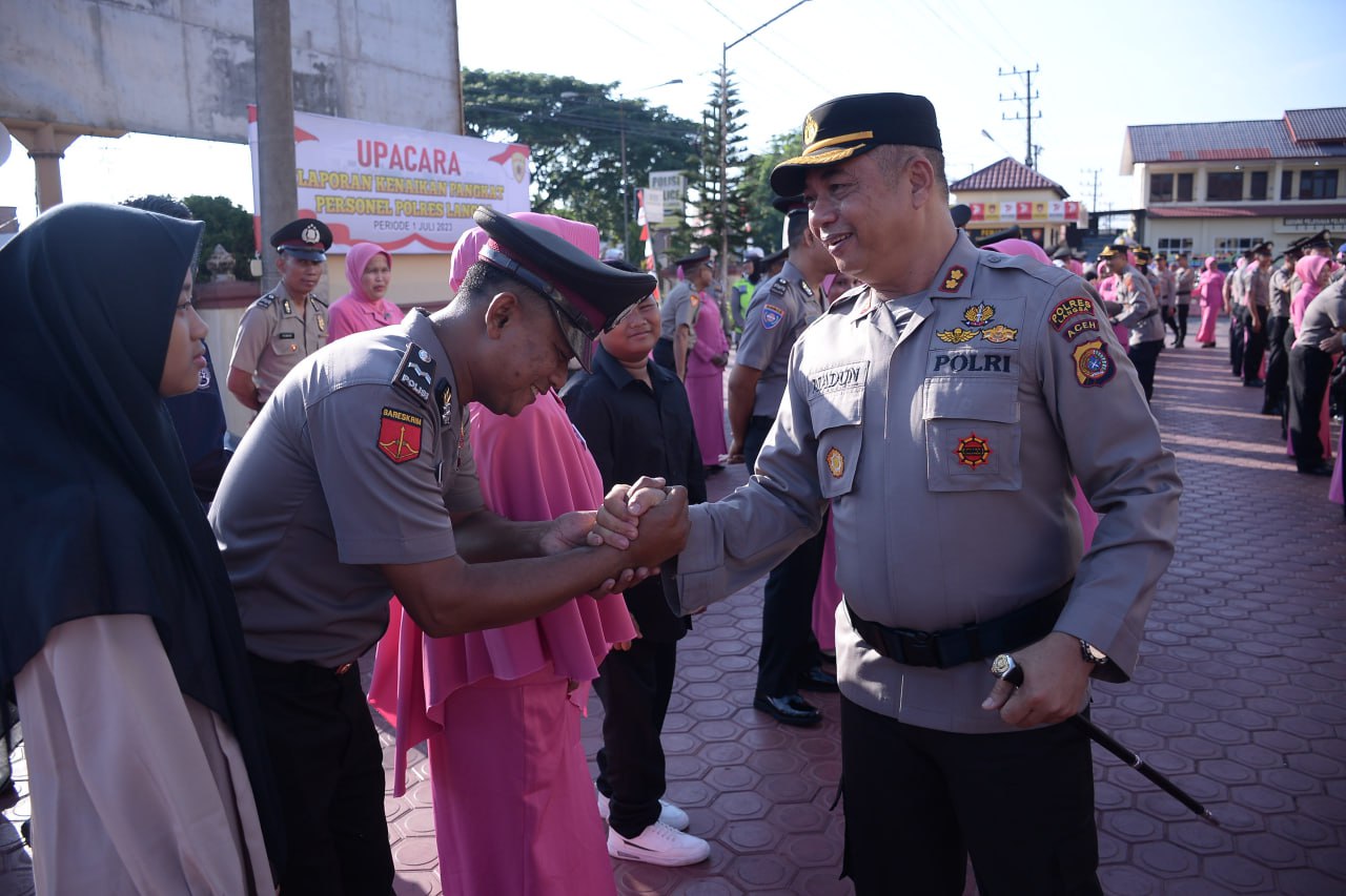 “Oleh sebab itu kita yang saat ini telah dinaikkan pangkat setingkat lebih tinggi patut berbangga hati dan jadikan ini sebagai awal perubahan dan kinerja dalam tugas dan tanggung jawab sebagai aparat yang mengabdi pada negara dan masyarakat.” Ucap Kapolres.