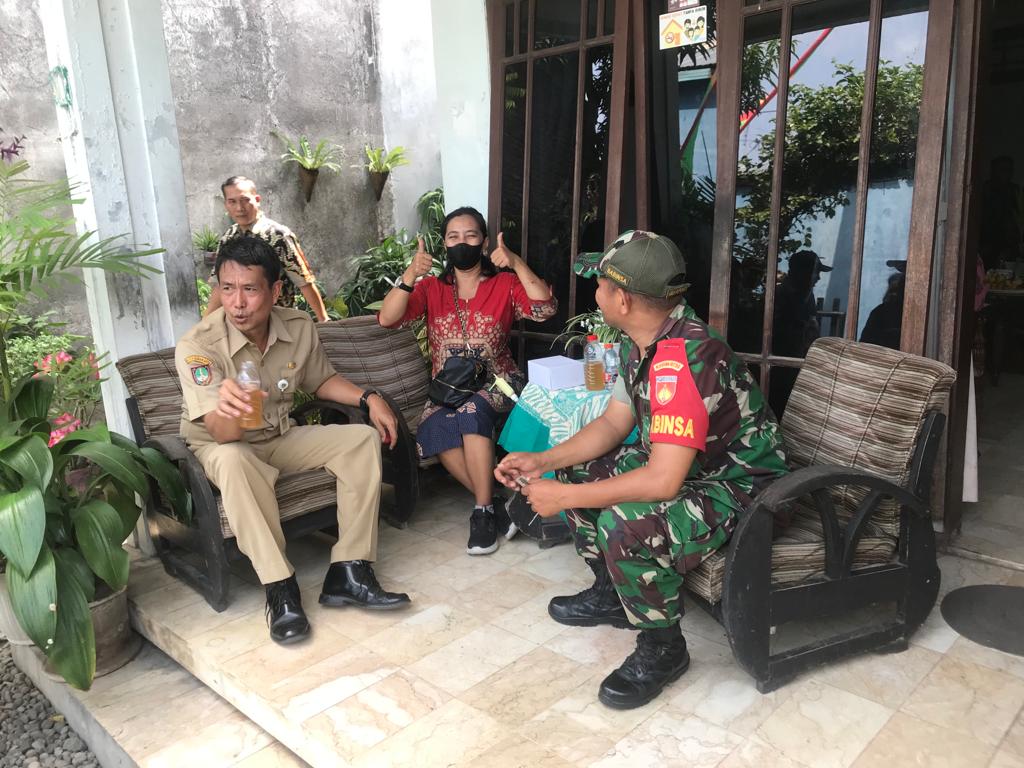 Dengan ditemani sebotol teh manis, Serka Jhony berbincang-bincang dan bersilaturahmi dengan perangkat desa dan warga masyarakat di wilayah Kelurahan Tegalharjo, Kecamatan Jebres.