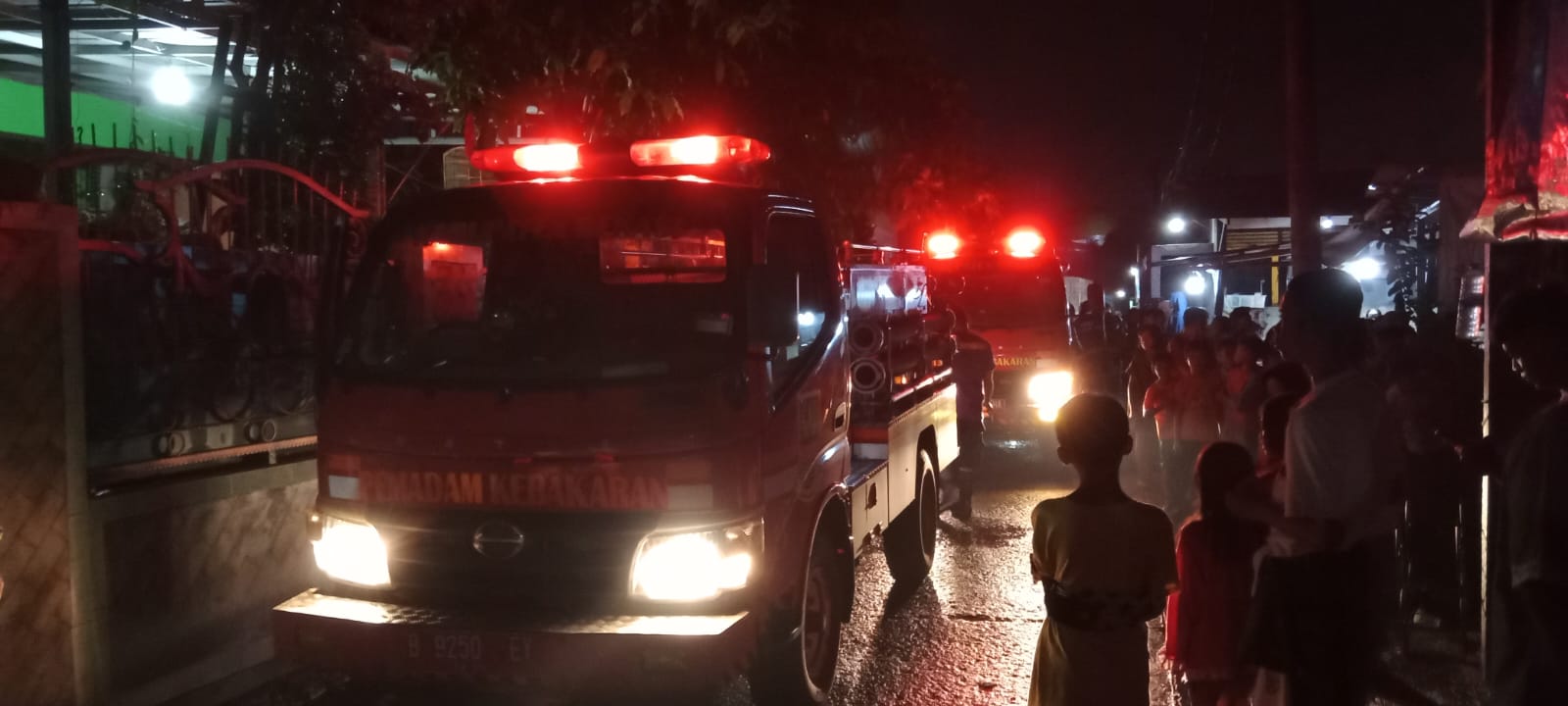 Berdasarkan informasi warga sekitar Kebakaran Terjadi Pada Pukul 18.37wib, api Diduga bersumber dari Korsleting Listrik. Sudah ada sekitar 2 mobil damkar di lokasi. Petugas damkar Berhasil Di padam Pukul 20.15 Wib.