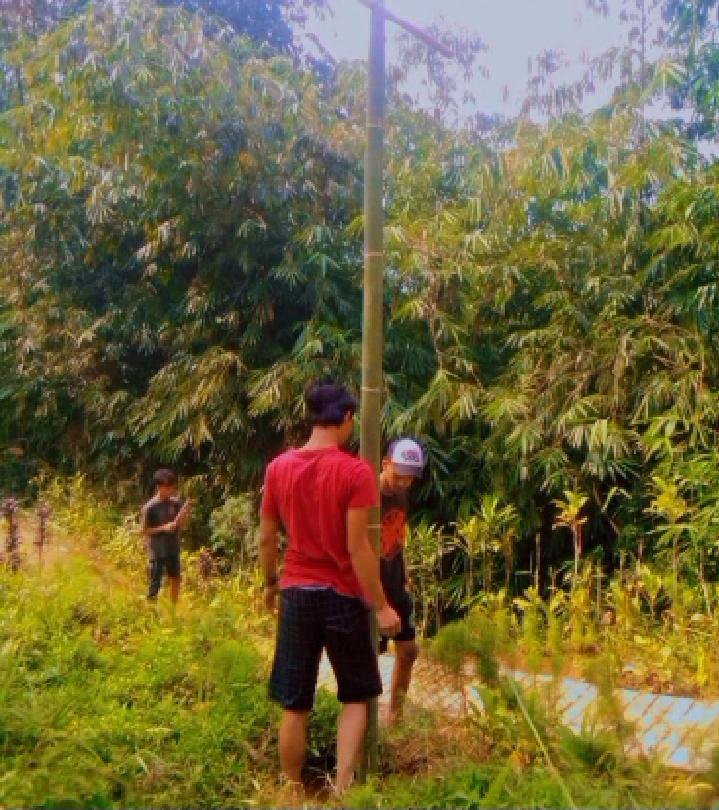 Kini jalur yg di lewati warga itu akan disulap menjdi jalan dua kampung Tunas mekar Agar mobilitas warga ketika melalu jalan bisa lebih lancar. Pembuatan tiang lampu cukup sederhana, Hanya sebatang pohon bambu di potong dan ujungnya dibuat panel untuk menaruh lampu yang tersalurilistrik.
